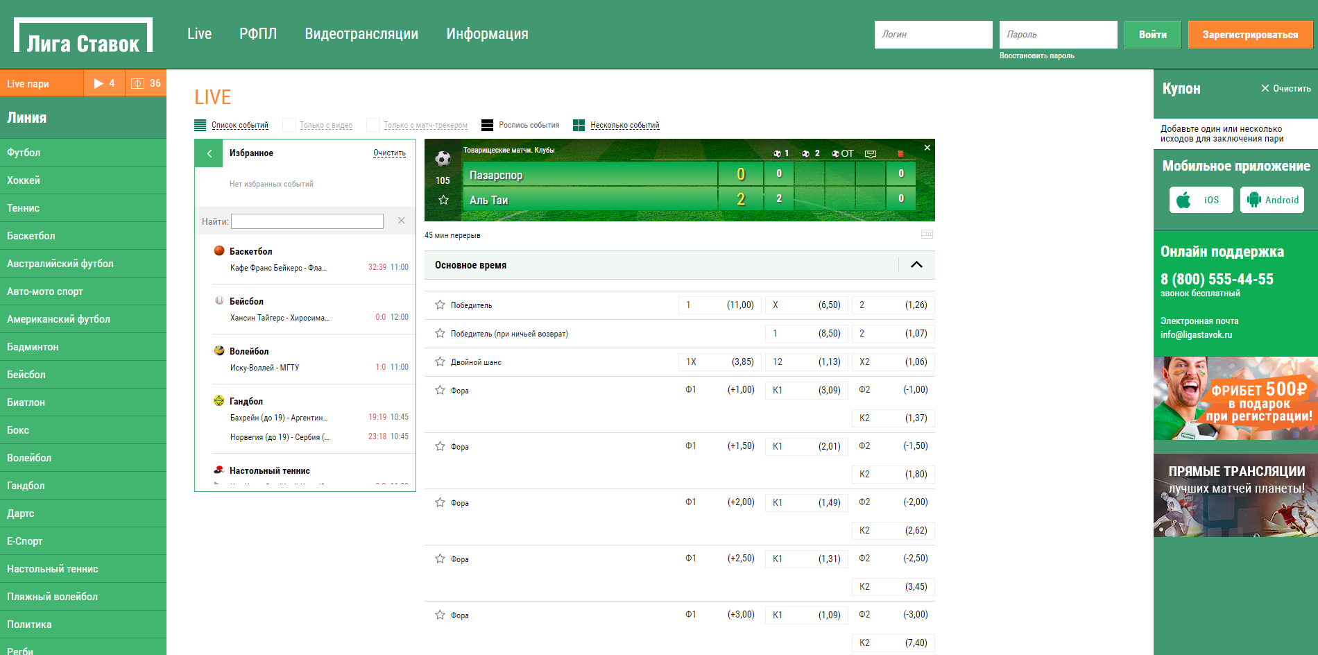 «Лига Ставок» принимает спортивные ставки круглосуточно и предлагает действительно обширное расписание: